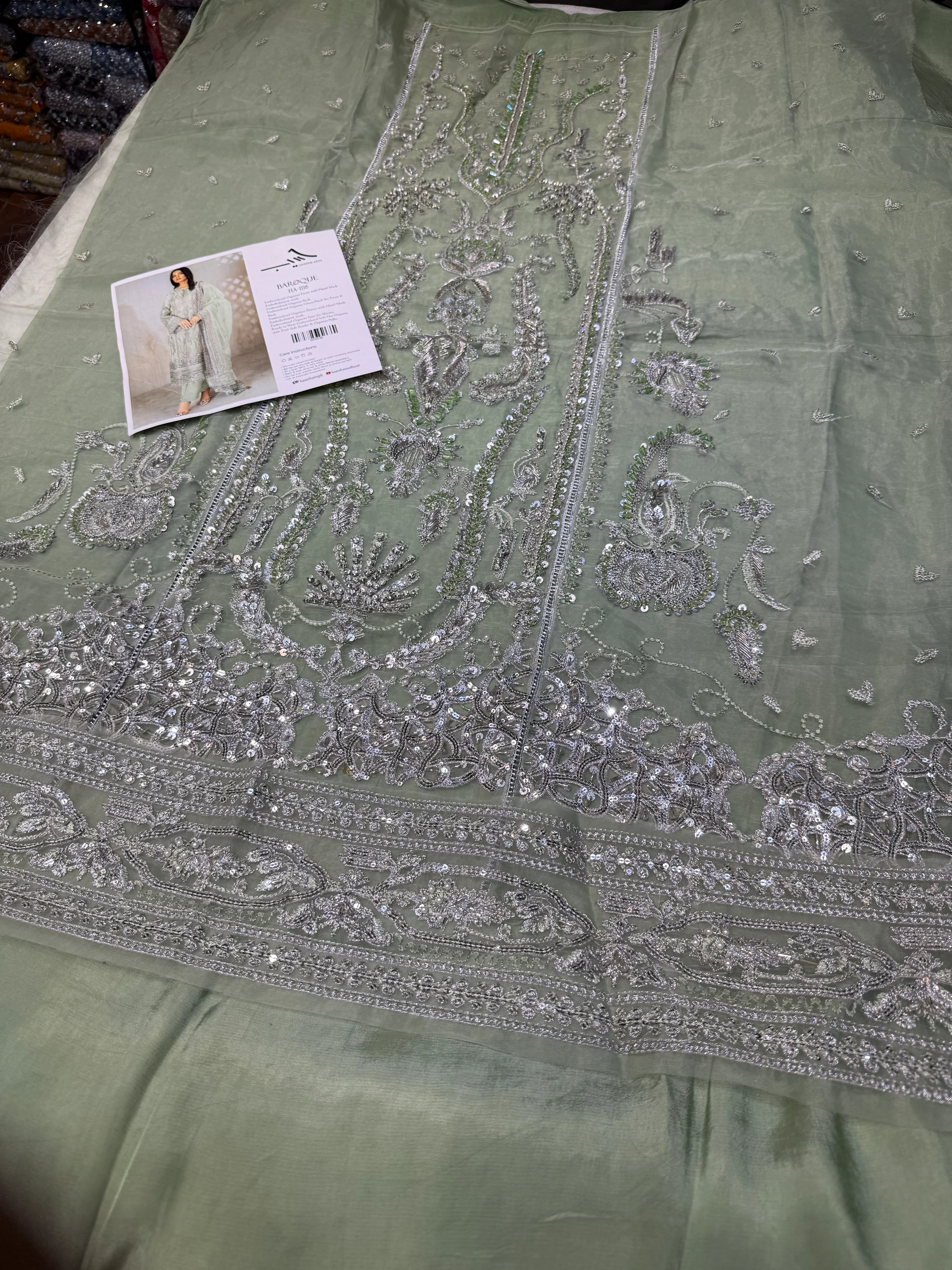 embroided,sequined HAND EMBELLISHED organza front.